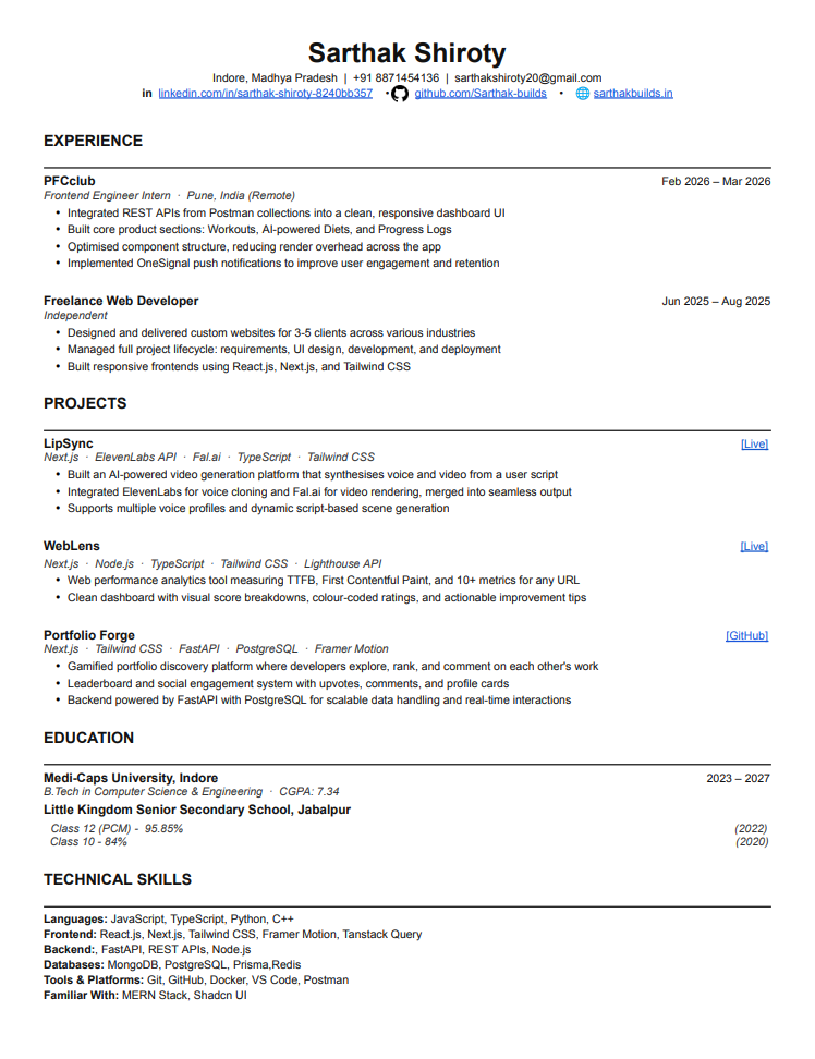 Sarthak Shiroty • Portfolio 2026